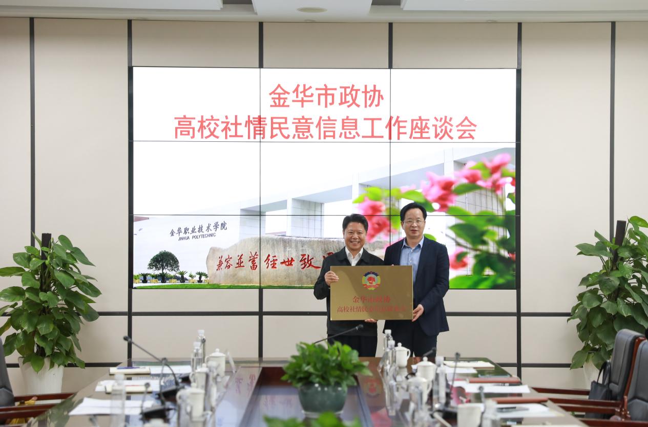 座谈会上,王振洪代表学校对祝伦根一行表示热烈欢迎,感谢市政协一直以来对学校的关心和支持,并从办学历史、专业门类以及综合实力三个方面简要介绍了学校的办学特色。他表示,高校是人才聚集地,金职院是金华自己的大学,市政协在高校设立社情民意信息联系点很及时很务实也很有针对性,学校将充分借助这一平台,发挥学科门类齐全及职业教育优势,广泛组织、动员专业人才参与信息工作,积极调研、有力发声,为区域经济社会发展贡献力量。