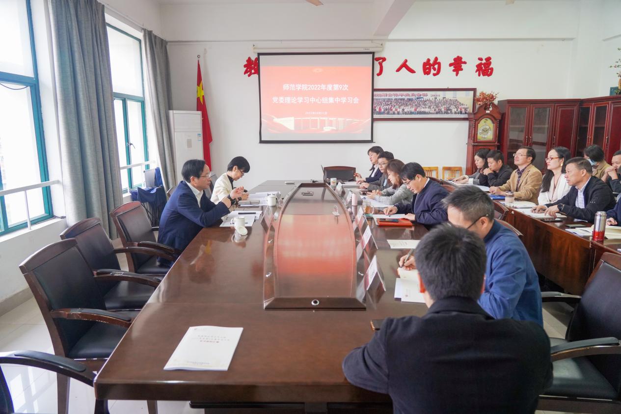 会上,全体参会人员专题学习了党的二十大报告。师范学院党委领导班子成员逐一作交流发言,“双强型”干部和师范学院团委书记结合工作岗位谈学习感悟,学院党委负责人作总结发言。