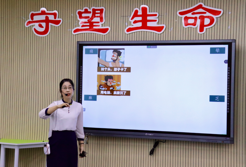“万病之源,起于颈椎”,方志美例举大量的真实案例,快速地带领老师们深入了解颈椎病的危害。她指出,随着现代人不健康的生活习惯,颈椎病不再是老年群体的常见病,颈椎病的病患,正在越来越普遍化、年轻化。随后,她通过分析26块脊椎图和3D人体颈椎模型,直观地呈现了颈椎构造和颈椎病的成因,并详细介绍了“神经根型颈椎病”“椎动脉型颈椎病”“脊髓型颈椎病”“交感神经型颈椎病”等常见颈椎病类型和病症,对比分析了中西医常用的缓解与治疗的方法、不同疗效及产生的作用。同时,方志美“手把手”带老师们一起做起了颈部保健操,耐心讲解保健操的分解动作及疗法。“米字操”“静力型和动力型肌肉锻炼方式”……几个简单易学的动作大大缓解颈部的疲劳感。最后,她还纠正了老师们日常睡、站、坐、走时的不良姿势,提醒大家在工作、生活间隙多多锻炼,可有效减轻颈椎间盘压力,充分锻炼颈椎周围的肌肉,呵护好我们的颈椎。