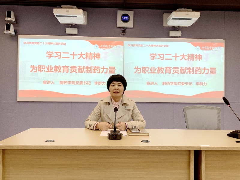 11月3日,制药学院召开党的二十大精神宣讲会,学院党委书记李群力以《学习党的二十大精神,为职业教育贡献制药力量》为题,作党的二十大精神宣讲,学院全体教师参加。
