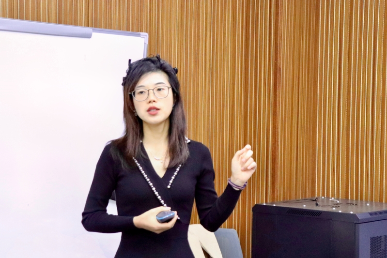 沙龙伊始,亢莹利围绕自身的学习经历,与教师分享了她就读硕博期间科研学习的感悟与收获。她希望青年教师能一直秉承谦逊的学习态度去践行科研工作。随后,她引用近代数学难题之一“四色理论”研究方向为基础,拓展介绍了顶点染色、染色边、符号图等图的染色原理,引导在座教师进一步感受数学的独特魅力。同时,针对“申报书”的撰写,她结合自身团队申报项目为例,特别对语言叙述方式开展细致地解释,强调撰写申报书时要注意格式的规范性,内容用词的合理性,研究结果的实际性,通过概述性语言引出研究背景与现状,突出研究思路方法的创新性。最后,她指出,青年教师应当养成精读论文的好习惯,积极参加学术性科研交流,遇到困惑时要学会虚心请教与自我提问,在思考中学会模仿再创新。