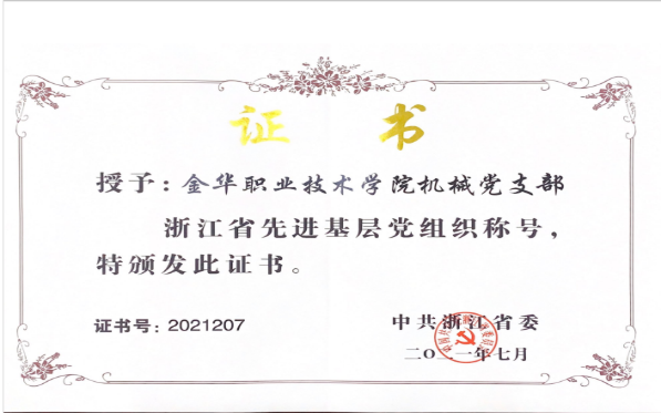 机械党支部获浙江省先进基层党组织