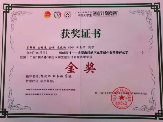 第十二届“挑战杯”中国大学生创业计划竞赛全国决赛获金奖