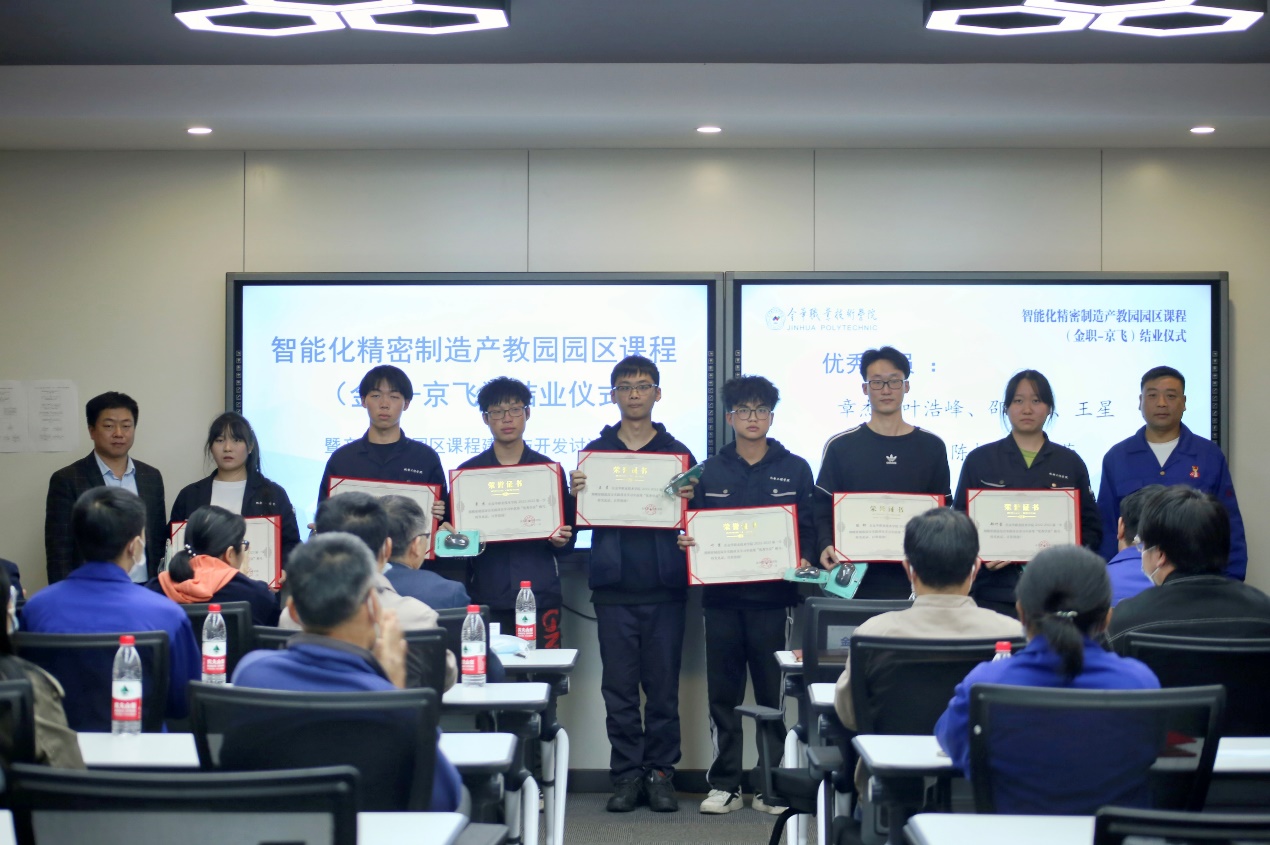 11月4日,38名机电201、202班的学生结束在智能化精密制造产教园区实体公司浙江京飞航空制造有限公司“精密制造加工综合项目”课程的学习。校企双方在园区举行了隆重简朴的课程结业仪式,企业负责人、企业各部门主管和一线师傅代表、学校教务处、机电工程学院相关负责人、专业课程师生一同参加,以“即产即学、即学即练”为核心的“园区课程”教学形态在智能化精密制造产教园走深入实。