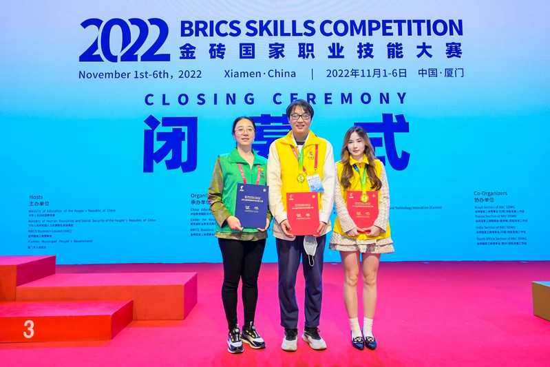 就在11月6日落下帷幕的2022金砖国家职业技能大赛决赛中,商学院电子商务专业教师王安然、朱合圣的二人组合,以绝对高分斩获大赛“网络营销”赛项国内决赛第一名,并实现了学院国际赛金牌零的突破。