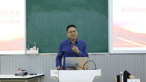 11月10日晚上,在2022级新生业余党校班上,艺术创意学院党委书记程春鹏以《学习党的二十大精神,做新时代好青年》为题,宣讲党的二十大精神,为同学们上了一堂生动的思政课。