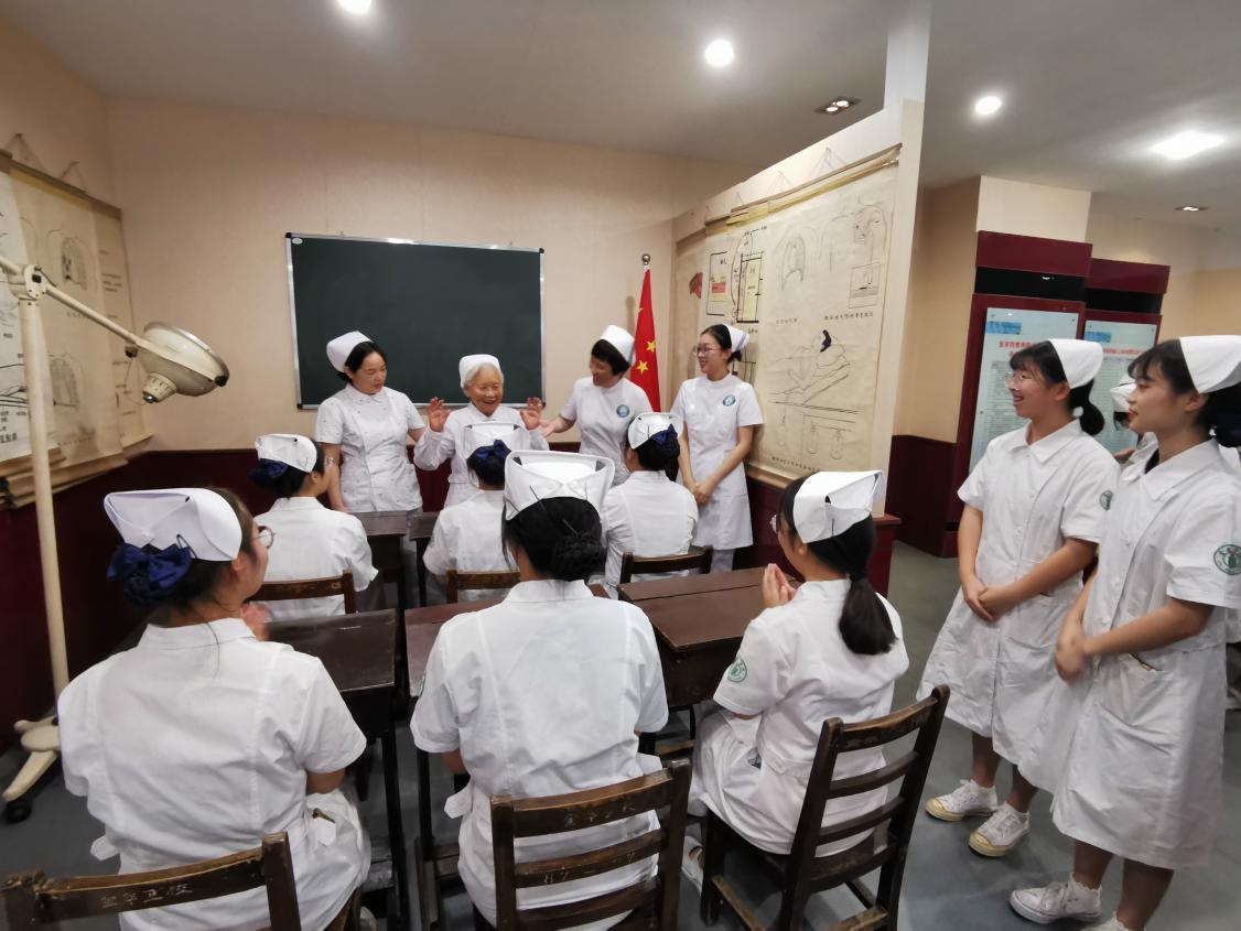 百岁老人陆月林给在校医护学生上主题教育课