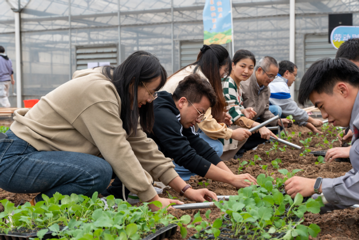 会前,与会人员与学生一起参加学校劳动教育周油菜播种活动。