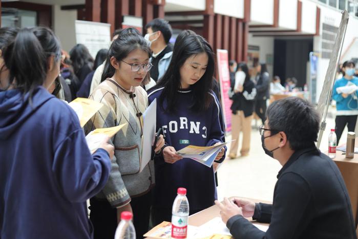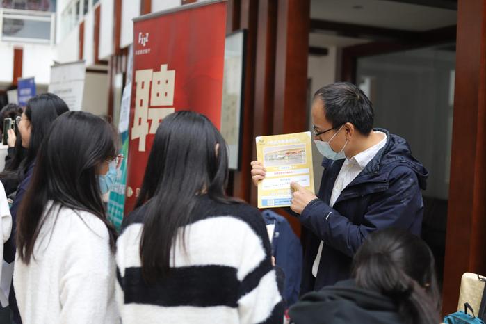 招聘会现场井然有序、气氛火热,与会企业热情地向前来参与应聘的同学们介绍公司的发展情况、岗位的发展前景;有求职意向的同学们也主动了解、积极投递简历。同时,为更好地服务学生,旅游学院在会场设置了“求职加油站”,为同学们提供“简历速诊”、面试辅导、职业决策等个性化的现场指导,帮助学生们顺利就业。