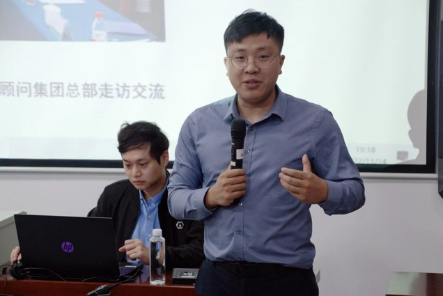 每家企业结合各自特色,从发展背景、企业文化、公司现状及员工职业发展、人才培养等方面作了具体的介绍。现任五洲工程顾问集团有限公司总经理助理傅煜斌为学校2019届毕业生,他向学弟学妹们分享了个人的职场成长经历,鼓励即将走向职场的同学们不仅要脚踏实地,而且要抓住机遇,迎难而上。他说:“正是因为我们公司重视年轻人抓住机遇、重用年轻人迎接挑战、依靠年轻人开拓未来,自己才能在短短几年从‘建筑小白’成长至如今的总经理助理。”