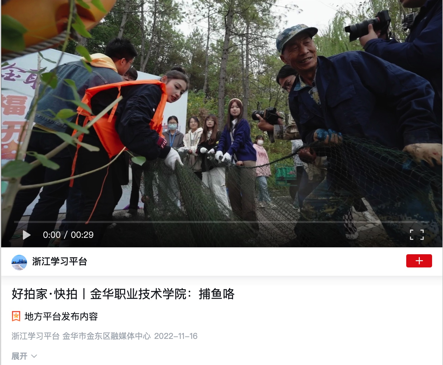 学习强国:好拍家·快拍丨金华职业技术学院:捕鱼咯