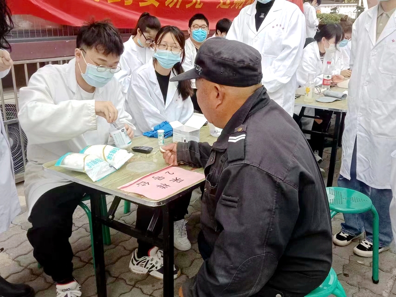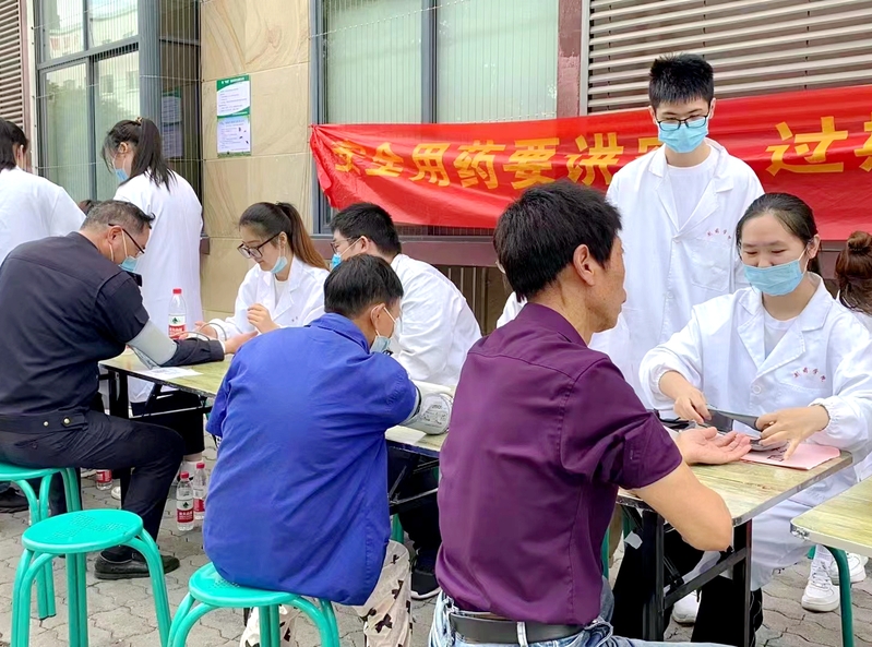 本次活动持续7个小时,同学们在药学专业教师的指导下,开展了安全用药咨询服务、科普安全用药知识和整理家庭常备药品这三项活动。活动伊始,师生们利用专业特长为居民们开展了量血压、测血糖等服务活动,耐心解答了居民们咨询的关于高血糖、高血压、高血脂等慢性病应如何用药、能否联合用药、如何应对用药副作用等问题,并科普了一系列日常饮食和锻炼等保健方面的建议,以期提升老年人的安全用药水平。