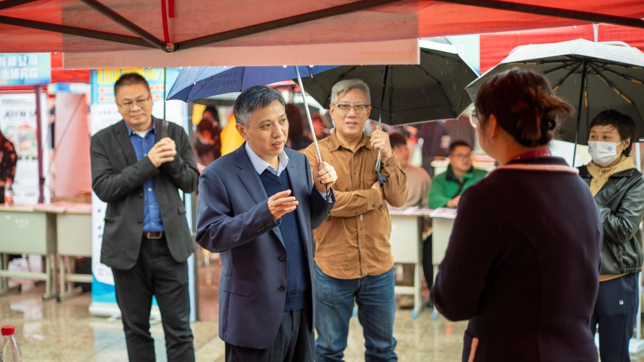 在招聘会现场,梁克东与金华久喵企业管理有限公司、金华市星悦融合文化传播有限公司、义乌市熹憬橙艺术培训中心等校友企业负责人做了深入地交流,了解了校友企业发展现状、岗位需求、招聘情况及对学校人才培养的建议,对校友返校助力母校就业工作表示感谢。他表示,学院要保持与校友、校友企业的沟通交流,拓展就业资源,也希望校友在推动产教融合、深化校企合作等方面继续贡献智慧力量,实现校友和母校携手共进、共赢发展。