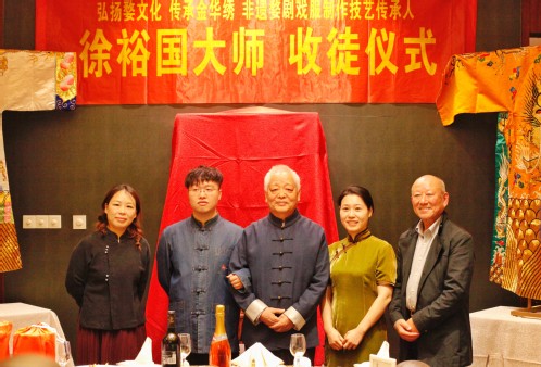 近日,婺剧戏服非遗传承大师徐裕国举办师徒结对仪式,金职院艺术创意学院服装设计专业教师方青青成为首批徒弟之一,共同弘扬婺文化,传承金华绣,争做非遗婺剧戏服制作技艺传承人。