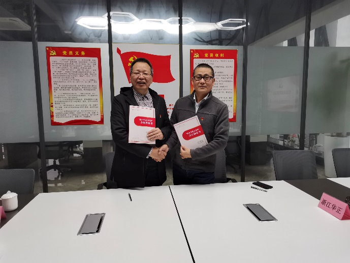 宣讲会后,在与会领导和党员的共同见证下,建筑工程学院建筑工程党支部与浙江华正建设项目管理有限公司党支部签署了《校企党建共同体建设》合作协议。吴雄彪向浙江华正企业党员捐赠《习近平谈治国理政》等书籍。