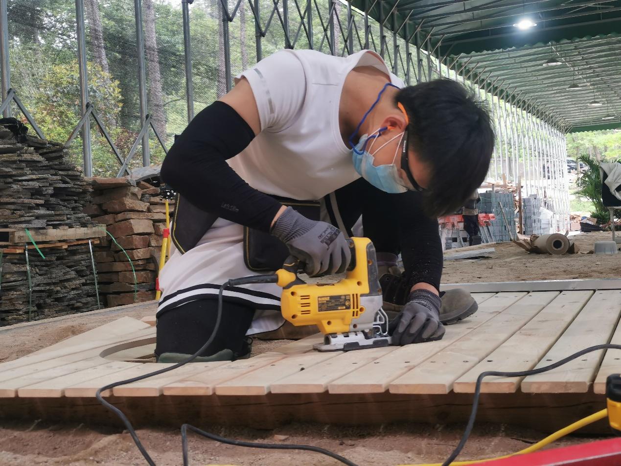 经历了2018年国赛一等奖的喜悦后,2019年团队仅拿到国赛三等奖。2020年,园林技术专业主任胡晓聪顶着压力再次承接了竞赛团队的训练任务,力争再创辉煌。作为主教练的他非常忙碌——备赛期间同时兼顾技术指导、体能训练、场地管理、比赛拉练、对外联络等各项事宜,难得的空闲时间就蹲在工位边研究赛项规程……