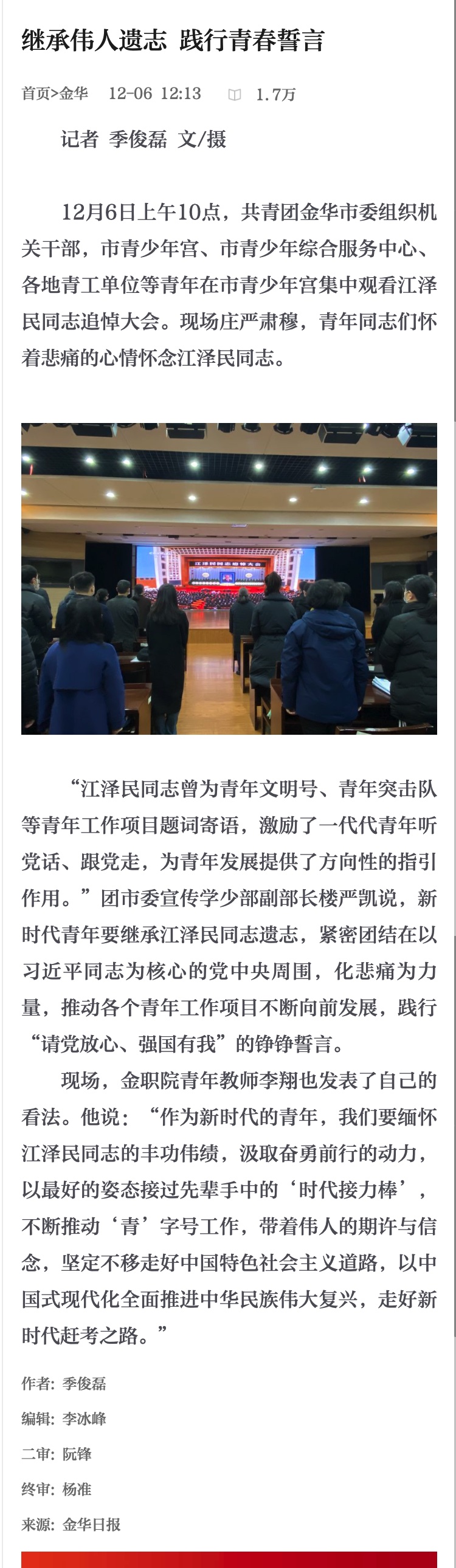 金华新闻客户端:继承伟人遗志 践行青春誓言