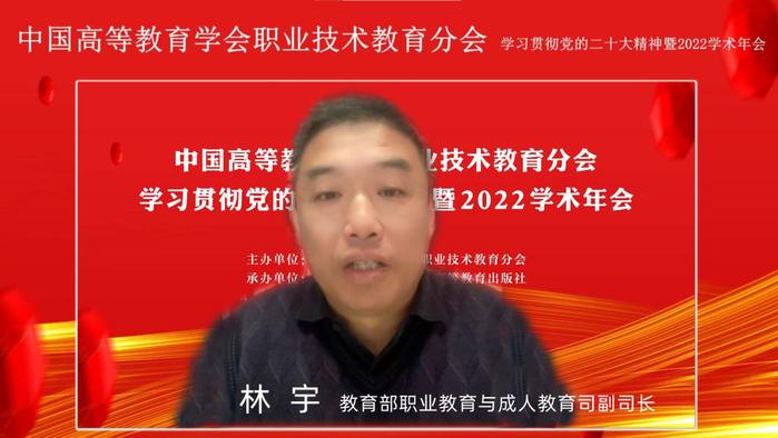 林宇作主旨讲话。林宇对学术年会的顺利召开致以热烈祝贺,充分肯定学会在国家职业教育发展中发挥的重要作用。他指出,我国职业教育迎来重要的改革发展期,党的二十大报告将教育提升到前所未有的高度,教育要充分发挥驱动创新作用。国家层面密集出台职业教育利好政策的良好形势前所未有,这充分说明职业教育在国家层面的受重视程度。同时,国计民生对高职教育寄予更高期望和要求,我国产业结构的调整迫切需要高职实现高水平发展,职业教育体系整体重心上移势不可挡。职业院校比以往任何时候具备更好的上水平、上台阶的基础,院校要积极开展研究与实践,开放办学,提供高技术含量的社会服务、引领区域产业的发展。
