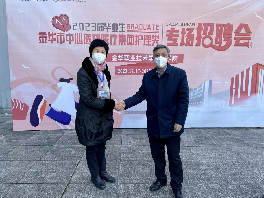 一直以来,学校与金华市中心医院保持紧密合作关系,目前已完成第二轮三年签约。深入的医校合作将有利于开拓更多的就业岗位,近几年医学院均有近百名学生入职金华市中心医院,金华中心医院每年也为金职院医学院学生提供多轮专场招聘,全方位、伙伴式的医校合作关系将共同推动“健康金华”高质量发展。