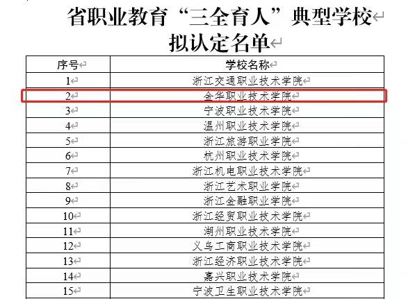 近日,浙江省教育厅公布了《关于浙江省职业教育提质培优行动计划部分项目认定名单的公示》,经组织评审遴选,金职院成功获评浙江省职业教育“三全育人”典型学校,这是学校自2019年获评浙江省“三全育人”综合改革重点支持高校(心理育人)后获得又一重要荣誉,充分展示了学校在“三全育人”综合改革方面取得的阶段性成效。
