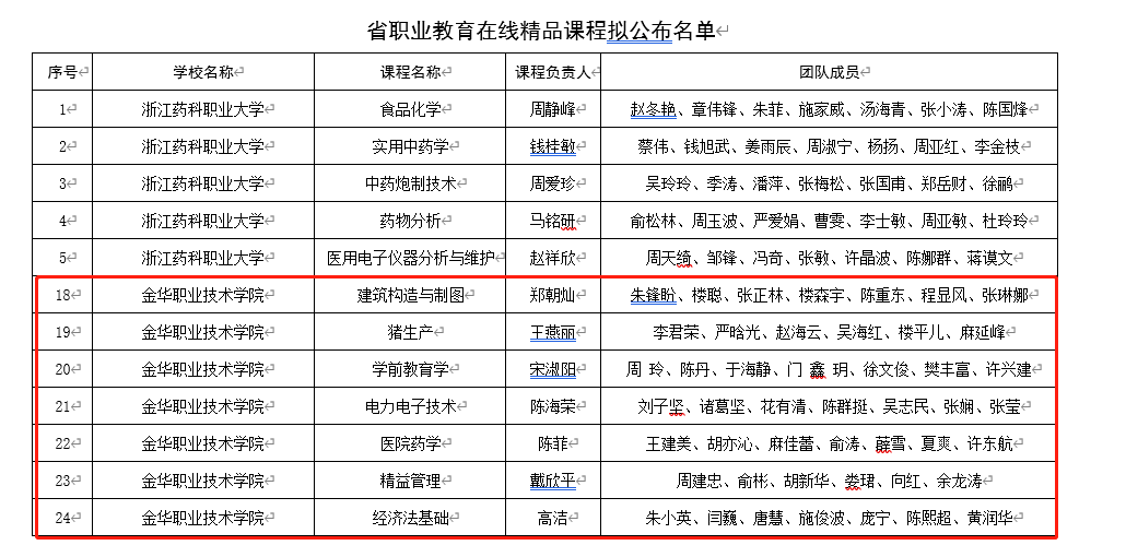 此次公示中,还公布了浙江省职业教育在线精品课程名单,学校推荐的《电力电子技术》等10门课程获评省级职业教育在线精品课程,获评数量全省并列第一。