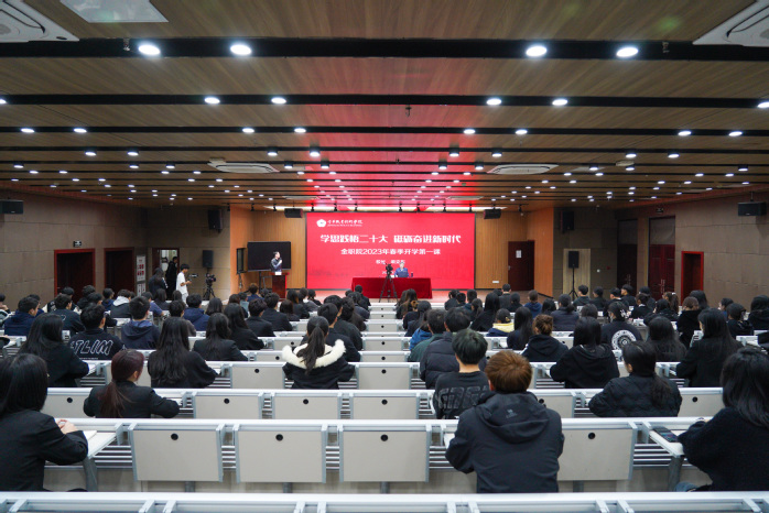 今年是全面贯彻和落实党的二十大精神的开局之年,本次开学第一课是全体同学提升思想政治修养的重要一课。梁克东从“全面准确把握党的二十大精神” “充分感受疫情后开放变革的社会发展”“潜心钻研矢志成长成才回馈社会”三个方面展开阐述,并寄语金职学子:“青春遇上新时代,建功立业莫等闲。当你们踏出校门,当你们走向社会走上工作岗位时,要牢记‘天道酬勤、厚德载物’,多一些对国家、对民族、对社会的大爱,不断升华自己的人生理想,在只争朝夕的砥砺奋斗中绽放自己的光彩,成为一个对国家有为、对社会有用、对人民有益的人。”