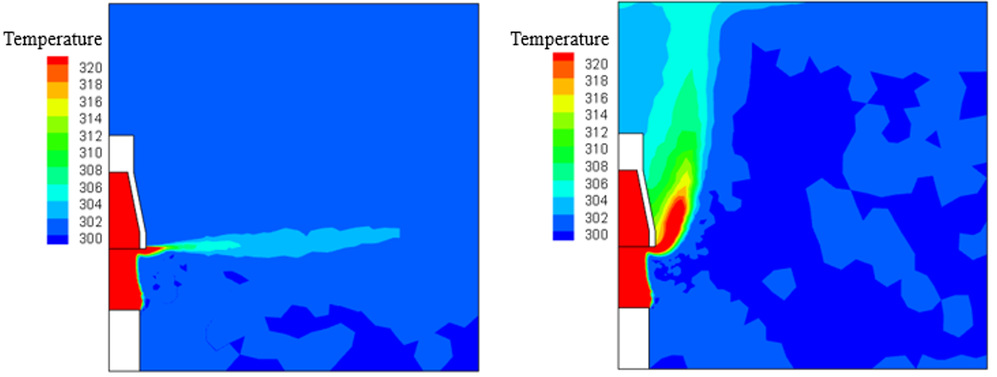 · 排风罩温度等值线对比图。