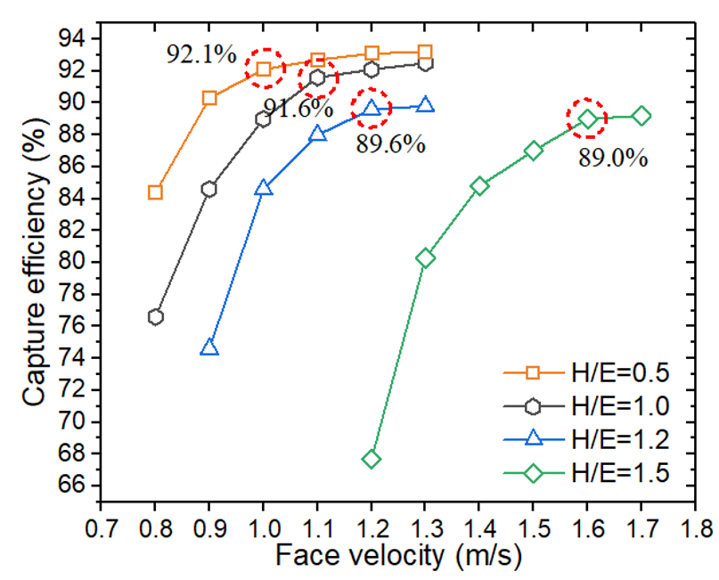· 捕集效率随参数变化曲线: