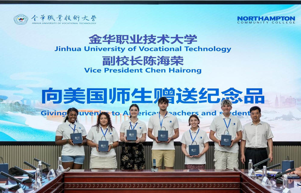 7月13日,金华职业技术大学“青年使者交流学习计划”YES项目——古韵今风:中国古建筑文化探索之旅开班仪式顺利举行。副校长陈海荣、国合处及建筑工程学院相关负责人,与来自美国宾夕法尼亚州北安普顿社区学院的师生代表共同见证这一时刻。