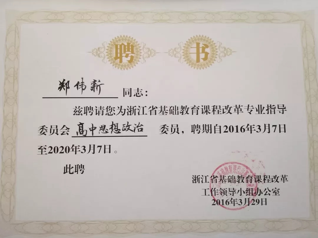 毕业那年,命运轻轻一推,将郑伟新带回了故乡。因家乡当地教育需要,本以为会成为一名小学教师的他,直接站在了初中的讲台上,教授的是社会学科——融合了政治、历史、地理三科的综合性课程。对于出身普师专业的他而言,这无疑是一个巨大的挑战,一切都要从头开始。郑伟新没有退缩,他积极克服专业的壁垒,以思政教师的身份,开启了职业生涯的第一个十年。这十年间,他默默耕耘,直到2003年,凭借出色的教学实力,他一举夺得浙江省优质课第一名,为未来的教学之路奠定了坚实的基础。