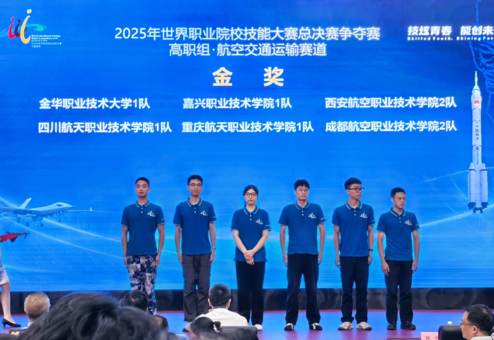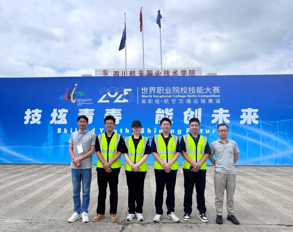 8月27日,2025年世界职业院校技能大赛总决赛争夺赛“航空交通运输”赛道在成都航空职业技术大学、四川航天职业技术学院圆满落幕,来自全国各地高职院校的146支队伍同台竞技。由航空工程学院戴礼涛、陈帮两位专业教师指导,吴家浩、胡钰莹、胡昕、张宇杰四位同学组成的队伍在激烈的角逐中发挥出色,最终斩获该赛道争夺赛金奖。
