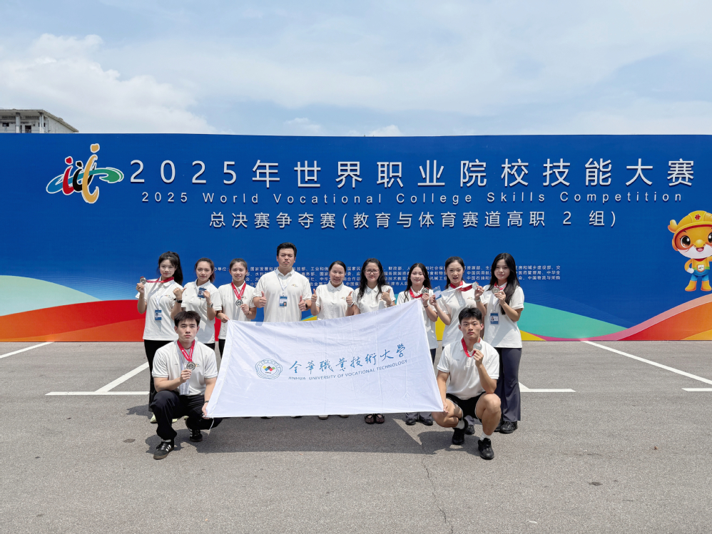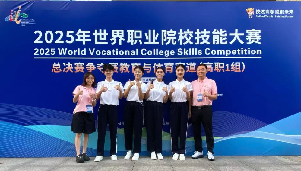 8月27日至31日,2025年世界职业院校技能大赛总决赛争夺赛“教育与体育”赛道比赛在长沙民政职业技术学院、湖南体育职业学院举行。师范学院共有三支队伍参加该赛道1组和2组角逐,由陈庭来、毛佳婧两位老师指导,卢奕、周佳妤、袁陈晨、吴成涛四位同学组成的参赛团队,由陈碧清、金璐两位老师指导,陆清烨、戴诗怡、林渝钧、陆茜茜四位同学组成的参赛团队,由林立跃、武超两位老师指导,虞婧雯、朱秋颖、陈妮婕、郑楚杰四位同学组成的参赛团队,均获得银奖。