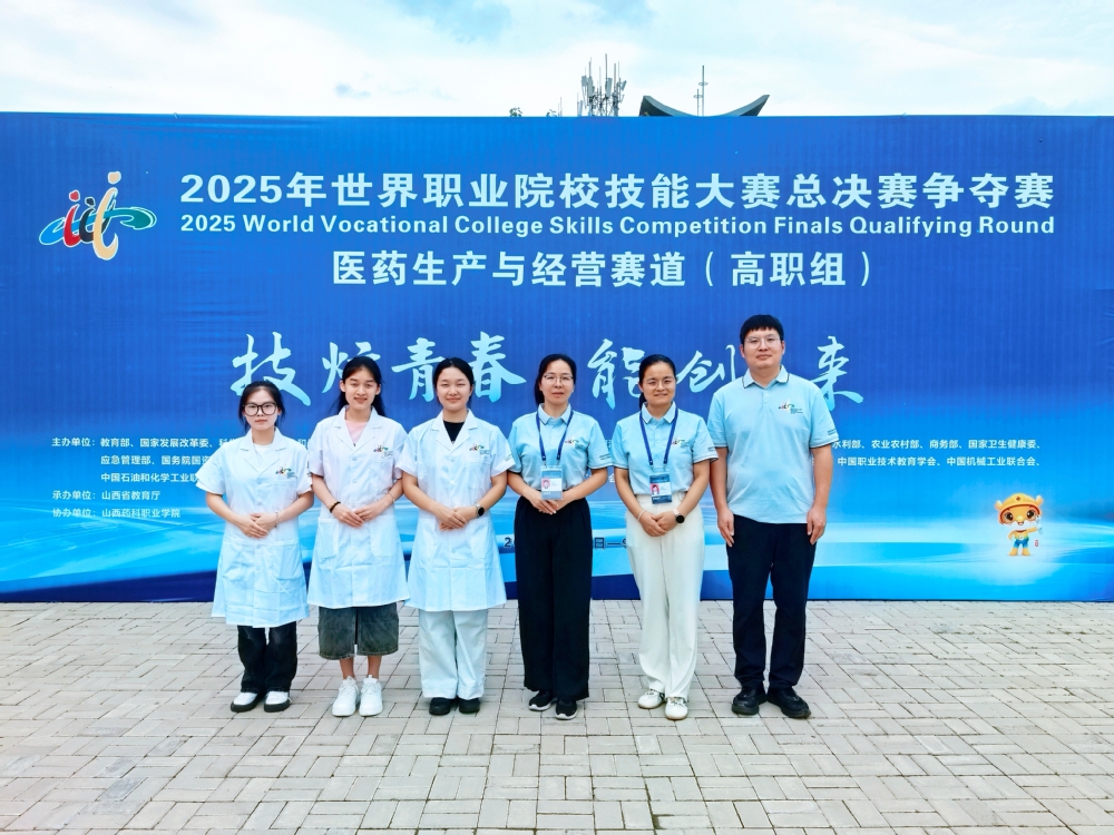 9月1日,2025年世界职业院校技能大赛总决赛“医药生产与经营”赛道在山西药科职业学院圆满落幕,汇集全国高职院校154支队伍参与角逐。由制药工程学院王建美、冯景慧老师指导,戴文文、潘琪琪、陈佳乐三名同学组成的参赛团队沉着应战、发挥出色,最终荣获银奖。