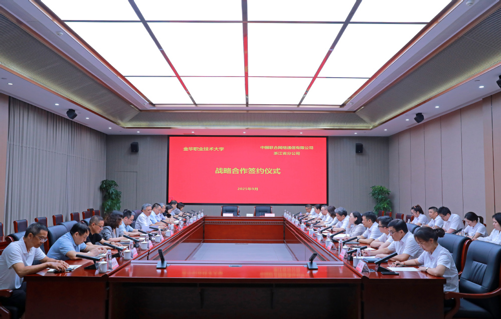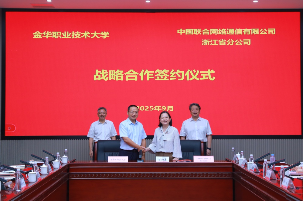 9月12日,金华职业技术大学与中国联通浙江省分公司签署战略合作协议。中国联通浙江省分公司党委书记、总经理童海波,党委委员、副总经理戴苓;金职大校长梁克东、副校长朱钢国,以及双方相关代表参加签约仪式。