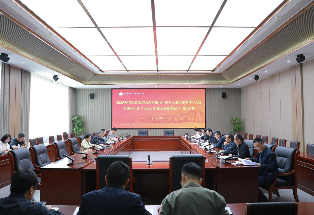 10月27日下午,金职大党委理论学习中心组召开2025年第10次学习(扩大)会,专题学习《习近平谈治国理政》第五卷。校党委书记王振洪主持会议并作总结讲话。校领导班子成员参加会议。