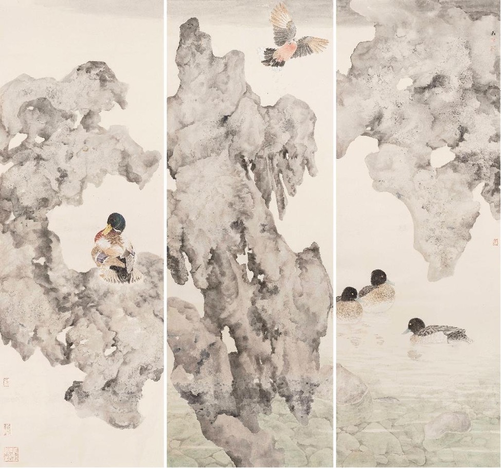 《湖石溪凫图》 纸本设色 2024年