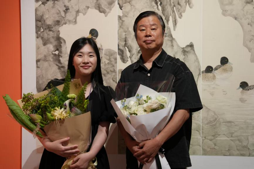 博士期间,她的作品《湖石溪凫图》入选2024年浙江省第十五届美术作品展;作品《春荫》在2025届国美中国画学院毕业展中荣获银奖。这些荣誉,是她长期沉潜笔墨的见证,也成为她走向高校讲台的底气。