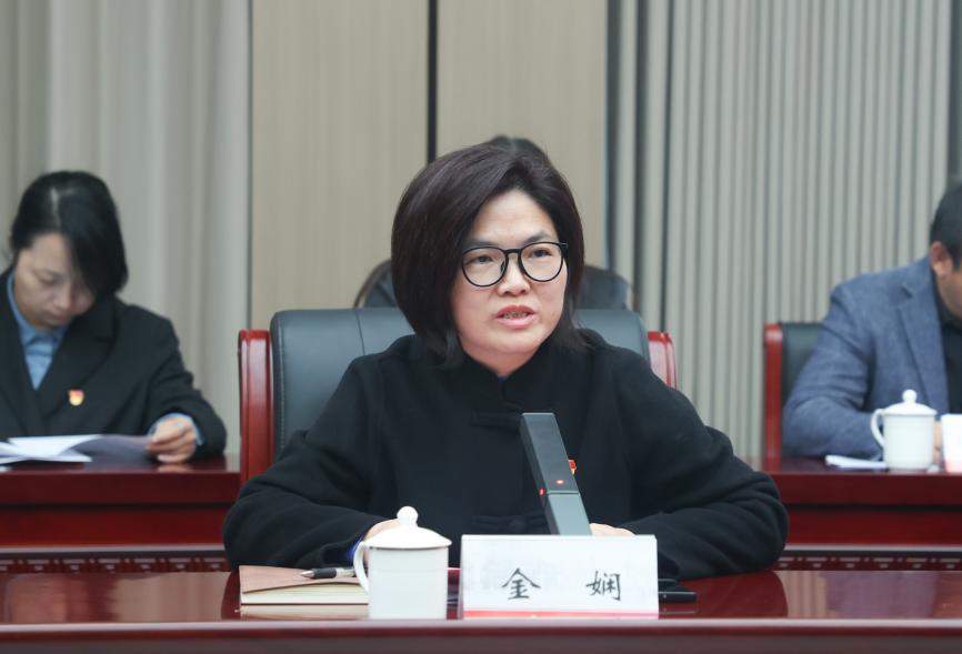 金娴对金职大给予科贸创办史上的大量帮助表示感谢。她指出,此次共建标志着两校的合作开启新篇章,相信在双方努力下,定能共同打造一幅协同共赢且富有辨识度的金科画卷。金娴从三个方面谈了下一步共建思路:一是以组织联建强根基,筑牢共建“桥头堡”。建立两校党委定期会商、二级学院结对共建、党支部互动的三级联动机制,推动党建工作标准互认、经验互鉴,让基层党组织成为凝聚力量、推动发展的坚强战斗堡垒。二是以人才共育谋发展,激活协同“动力源”。聚焦优势专业领域发展需求,共建课程资源库、联合开发实训项目、互聘骨干教师授课。开展跨校研学等活动,共同培育高素质技术技能人才。三是以产教融合促提升,打造发展“共同体”。紧扣金华区域产业发展需求,整合两校科研力量组建“党建+学科”攻关团队,推动实训基地共建、就业渠道互通,在服务地方经济社会发展中彰显职业教育的使命担当。