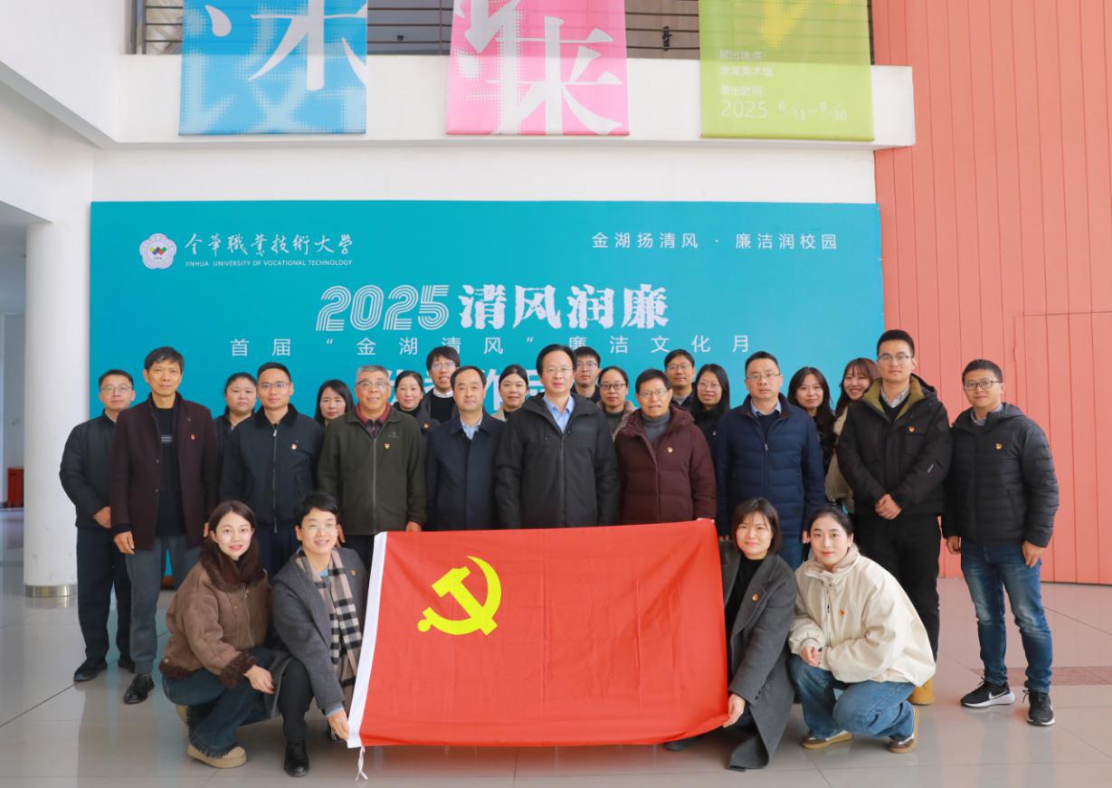 为深入贯彻学校“清廉金职”建设要求,推动廉洁教育入脑入心,12月31日,校办党支部、校友会基金会党支部组织全体党员前往金湖美术馆,集中参观学校廉政作品展,开展了一场主题鲜明、内涵深刻的主题党日活动。校党委书记王振洪、纪委书记姜建忠参加活动。