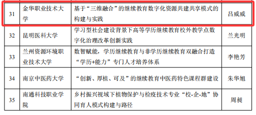 近日,教育部公布了第三批高等继续教育领域学习型社会建设重点任务建设名单,金华职业技术大学两个项目成功入选,标志着学校在服务全民终身学习、推动高等继续教育创新发展方面取得重要突破。