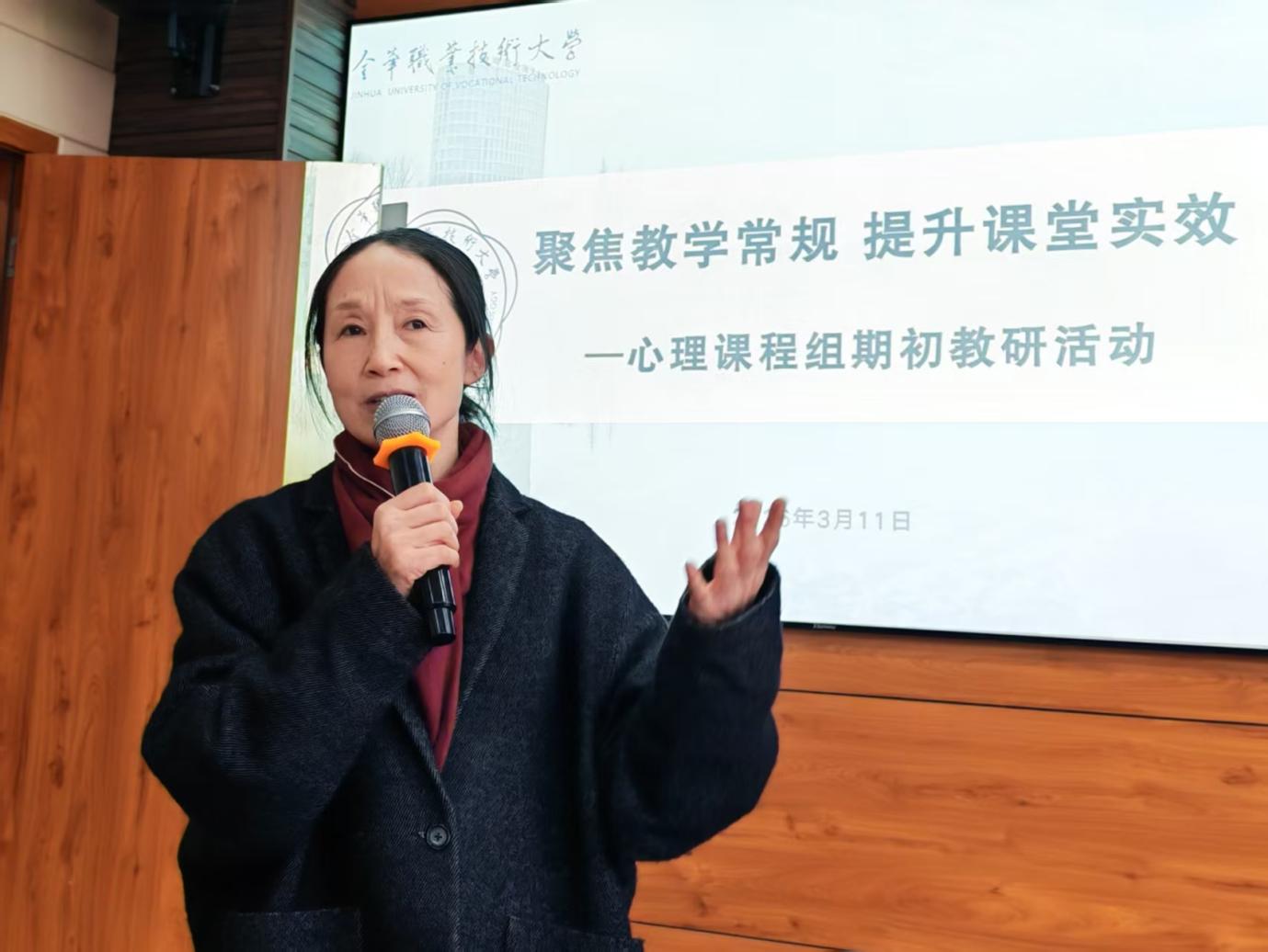 会议伊始,课程组专职督导章尚贞老师结合教学实际,梳理总结了课堂管理与教学实施中存在的突出问题,如课堂秩序管控有待加强,学生专注度需进一步提升;教学活动设计与专业特色、学生学情结合不够;课堂教学目标聚焦性不强,重点不够突出。章尚贞老师建议教师在标准化教案基础上融入个性化调整,课前做到“备内容、备学生、备困惑”,增强教学针对性,并分享了课堂管理技巧,鼓励教师利用线上资源丰富教学形式,激发学生学习兴趣。