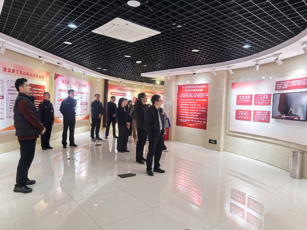 在监狱干警的引导下,大家依次参观了基地内的各大专题展区,并现场实时视频观看了监舍、劳动车间、教育场景,直观感受自由的珍贵和法律的威严。随后,资产处一行参观了金华监狱内的“浙中廉洁法制教育基地”。
