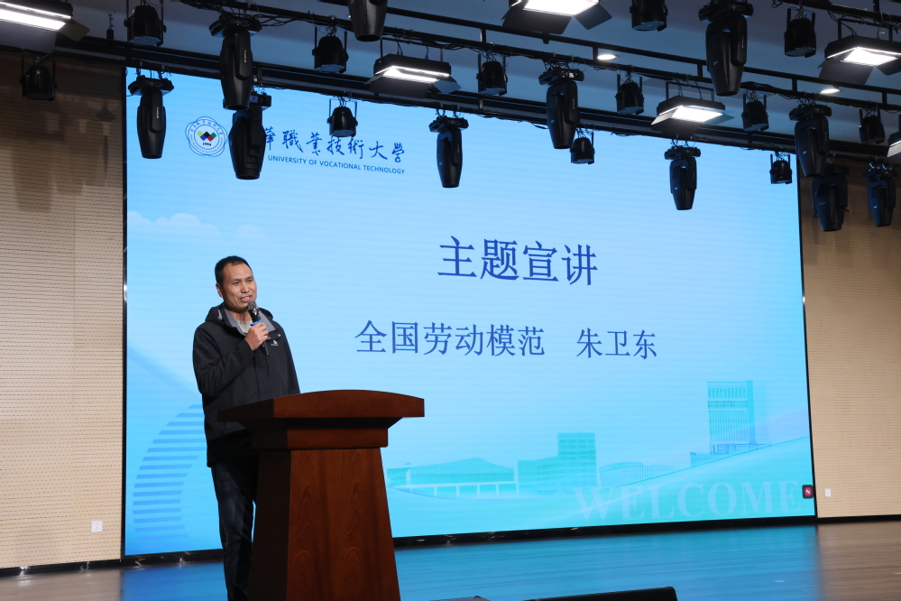 启动仪式后,全国劳动模范、食用菌首席专家朱卫东作题为“择一事终一生”的首场宣讲。他结合自身三十余载扎根农业科研一线的奋斗历程展开讲述:从田间地头观察菌种生长,到主持20余项科研项目;从成功选育“仙斛1号”铁皮石斛品种,到荣获5项国家发明专利,每一步都诠释着敬业、精益、专注、创新的工匠本色。“土地不会骗人,你付出多少,它就回报多少”,朴实的话语触动在场师生。