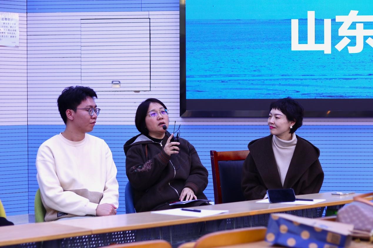 12月20日,2024山东大学影视文化传播高端学术论坛“国际传播视野下的中国故事”第六期:IM两岸青年影展获奖作品展映研讨于中心校区董明珠楼211举行。IM两岸青年影展组委会高校活动部总监林斯维,展映总监林世强,山东省广播电视协会会长、高级记者彭金棣,秘书长、高级编辑许翠兰,淄博师范高等专科学校党委委员、副校长尹玉箫,美术学院教授赵红云,济南百丽宫影城总经理董文欣,山东广播电视台王静工作室负责人、纪录片《武梁祠》总导演、总撰稿王静莅临活动现场,与来自淄博师范高等专科学校和山东大学各个学科的150位同学一同观影研讨。山东大学影视文化艺术传播研究中心执行主任、新闻传播学院副教授于晓风主持本场活动。活动开始前,山东大学新闻传播学院副院长(主持行政工作)、山东大学影视文化艺术传播研究中心主任倪万,山东大学新闻传播学院副院长邱凌会见了到访的IM两岸青年影展主办方代表。