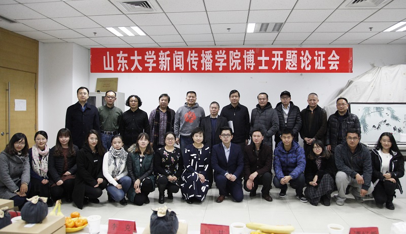 2016年12月29日下午,山东大学品牌与传播研究所2015届李润泽、唐鑫梅、田原3名博士生的开题报告论证会在知新楼423室举行。导师李克教授以及12位来自传播学、艺术学、文艺美学等学科的权威专家教授出席开题会,并为博士生论文开题提出意见和见解。山东大学品牌与传播研究所全体硕士博士研究生参会聆听。