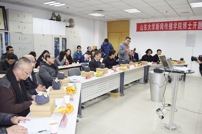 会议由开题评议委员会主席谭好哲教授主持,山东广播电视台党委书记、台长、山东大学新闻传播学院院长吕芃教授首先代表学院致辞,感谢外校专家教授在百忙中能参加我院博士生开题报告会,特别对山东大学品牌与传播研究所的教学、科研、学科提升工作予以高度评价,他还进一步肯定了李克教授所取得的人才国际化培养硕果,并预祝三位博士生论文能够高水平完成。