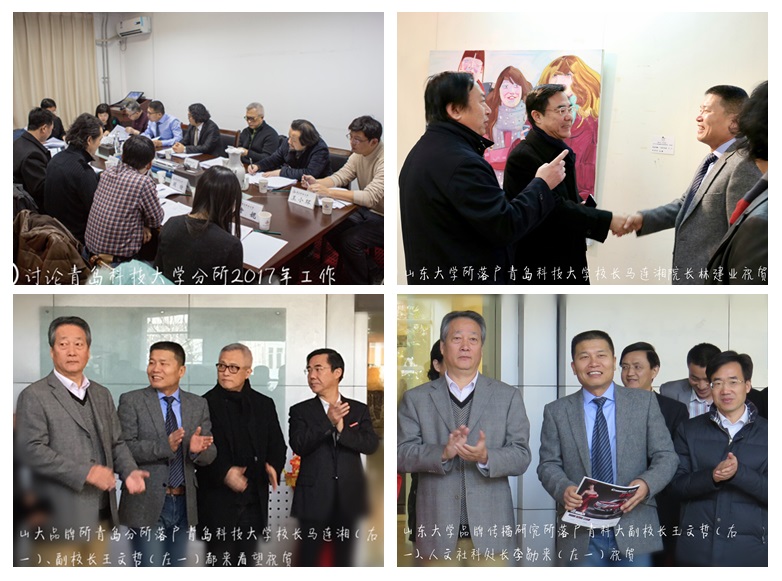 1月6日山东大学品牌所与青岛科技大学举行了山东大学品牌与传播研究所青岛科技大学分所建设项目合作单位揭牌仪式。山东大学品牌与传播研究所所长、博士生导师李克教授与青岛科技大学副书记、副校长张元利教授出席授牌仪式,青岛科大校党委副书记、校长马连湘、副校长王文哲教授亲自接待了李克教授,再次体现了青科大对设立分所的重视。元利副书记代表青岛科技大学发言;表示非常期待、盼望迊来了山东大学品牌与传播研究所所长李克教授到我校挂牌的日子,我们青岛科技大学会尽努力做好我们分工的事,把分所工作建设好,给山东大学品牌与传播研究所、新闻传播学院、设计学硕士生,视觉艺术传播博士生创造良好的环境,和高端多媒体设备平台,进一步探索双方国际化互动人才培养新模式,张元利副书记表示今后科技大将会在人才培养、产学研、学生就业等方面与山东大学开展更加深度合作,依托山东大学的影响力实现双赢,共赢”局面。