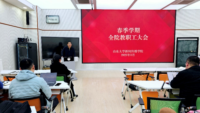 3月6日,新闻传播学院召开2025年春季学期全院教职工大会,传达学校新学期工作会议精神,部署学院2025年度重点工作任务。学院领导班子成员及全体教职工参加会议。