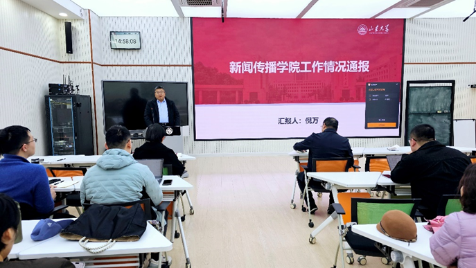 新学期以来,新闻传播学院坚持以“三问五要求”为准绳,增强“全面图强”的责任感、紧迫感,对标先进,先后通过举行机关党支部新学期专题学习会、领导班子民主生活会、寒假工作务虚会、学院机关行政人员述职评议会、党支部书记述职评议考核、学风建设研讨会、基层教学组织负责人工作座谈交流等,集思广益,凝心聚力,谋划推进高质量发展的实招,最终形成学院2025年工作要点。2025年,新闻传播学院将持续优化“立足‘大’、聚焦‘高’、支持‘融’、彰显‘新’、成就‘特’”的发展策略,以培养造就担当民族复兴大任的新闻传播学科高素质人才为目标,系统推进“数智化和国际化人才培养教育教学的一套体系、师资队伍建设的两项工程、服务国家战略的三大方向”为核心的“一二三”方案实施见效,全面提升服务国家重大战略能力,为国家马克思主义理论研究和建设工程、全媒体传播建设工程、中华文明全球传播工程等贡献山东大学新闻传播学科的智慧和力量。