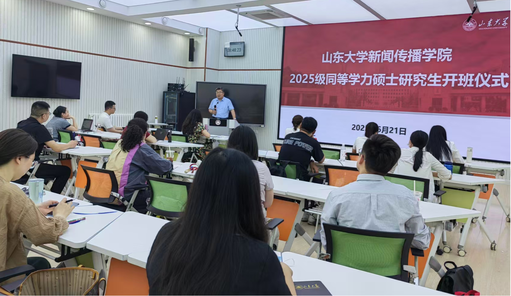 仪式结束后,2025级课程班首课正式开启,由于智源副教授讲授《新闻传播学研究方法》。
